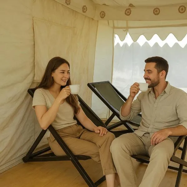 Sam Desert Jaisalmer Camp位于斋沙默尔,距离杰伊瑟尔梅尔堡有18分钟步行路程,提供酒吧,享有花园景。这家住宿配有餐厅,还提供花园、桑拿房和热水浴池。住宿为客人提供客房服务和24小时前台。 所有房间均配备空调、冰箱、吐司机、电热水壶、淋浴设施、免费洗浴用品和书桌。这家度假村的部分客房配有带浴缸和拖鞋的共用浴室,也为客人提供阳台。