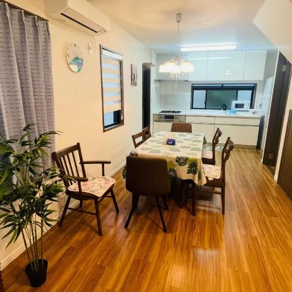 GUEST HOUSE GREEN BASE HAKATA提供带阳台和免费WiFi的住宿,距离Konko Church - Minami Ward有8分钟步行路程。住宿拥有热水浴池。 房间配有空调、带用餐区的设施齐全的厨房、平板电视以及带淋浴设施、免费洗浴用品和吹风机的私人浴室。住宿还配备冰箱、微波炉、炉灶和电热水壶。 这家公寓提供带热水浴池和露台的经济型住宿。