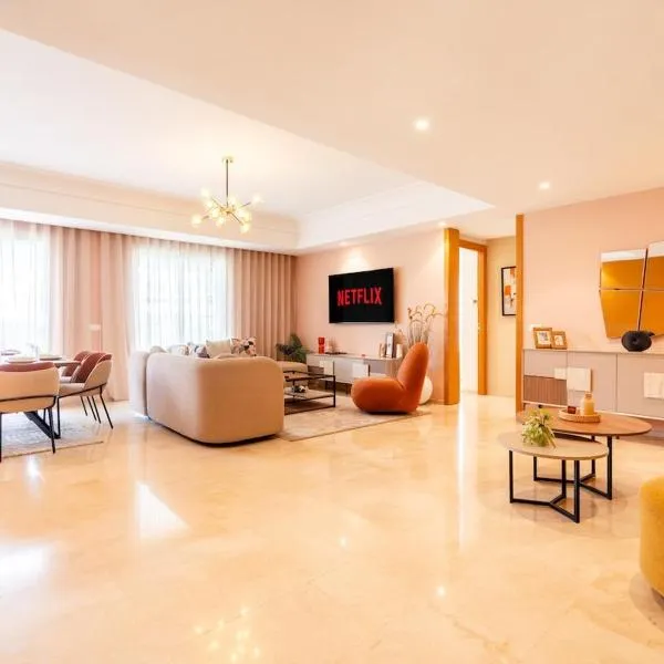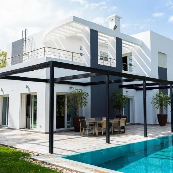 Featuring air-conditioned accommodation with a private pool, garden view and a patio, Luxury villa Bouskoura Pearl is set in Casablanca.