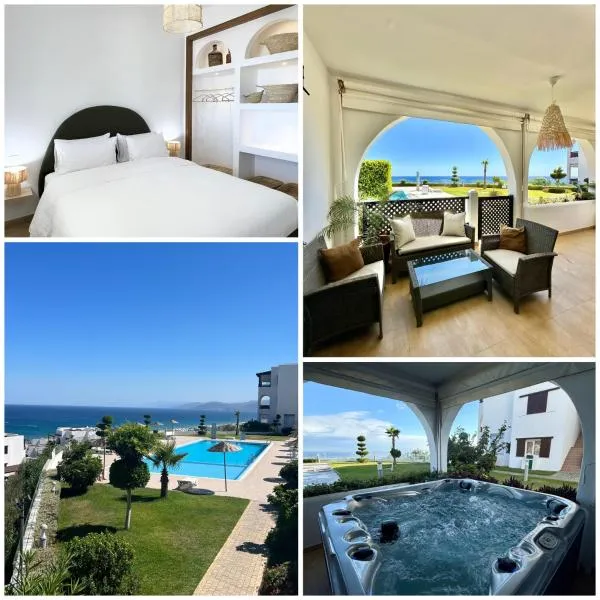Appart-Hotel cabo negro坐落于Tanger-Tetouan的卡博尼格洛,拥有露台,享有池景。这家住宿距离卡波黑人海滩(Cabo Negro Beach)有19分钟步行路程,配备花园和免费私人停车位。 这家家庭式住宿提供平板电视。 这家家庭式住宿的客人可以使用热水浴池。 得土安机场距离住宿有10公里。
