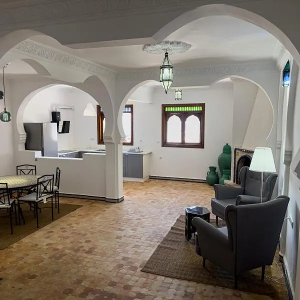 Dar el oued提供季节性室外泳池、花园以及带露台和免费WiFi的空调住宿,距离甘杜里海滩(Plage Ghandouri)有1.9公里。 所有自助式房间均铺有瓷砖地板,配有平板电视、保险箱、带冰箱的设施齐全的厨房以及带淋浴设施的私人浴室。住宿提供微波炉和电热水壶。 这家度假屋的客人可以使用热水浴池。