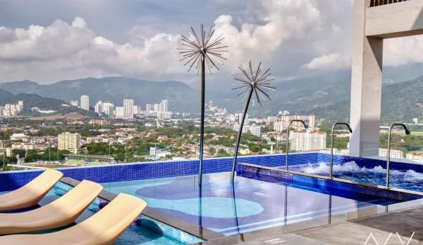2BR Georgetown Luxury Suite #RoofTopPool #Beacon坐落于乔治市,距离诺瑟姆海滩(Northam Beach)有2.7公里,距离槟城时代广场有19分钟步行路程,配备免费WiFi以及带室外泳池的花园,享有市景。客人可以使用健身房和桑拿浴室。内部提供私人停车位。 客房配有平板电视以及带淋浴设施和吹风机的私人浴室。厨房拥有冰箱、烤箱和微波炉。