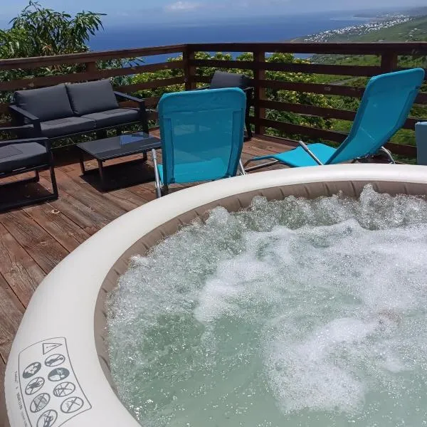 Le Bleu Horizon - jacuzzi - vue mer - clim - wifi位于圣保罗,配备带免费WiFi的海景客房,配有花园、露台和烧烤设施。这家住宿享有花园景,距离苏里斯肖德海滩(Plage de la Souris Chaude)有2.1公里,距离The House of Coco有11公里。