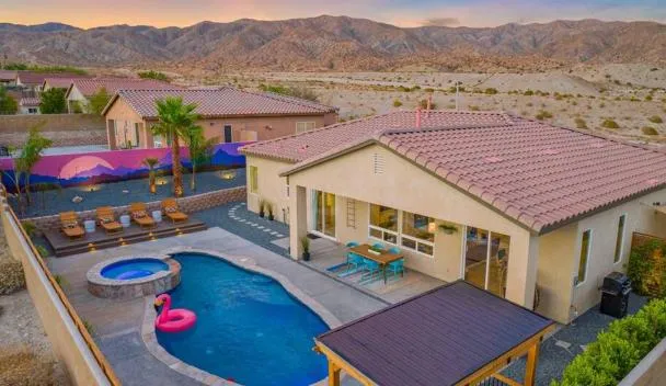 Located in Desert Hot Springs, PinkBlissHouz - Pool, Spa, Firepit, Themed Rooms by MariamsBnb provides accommodation with private pool, free WiFi and free private parking for guests who drive.