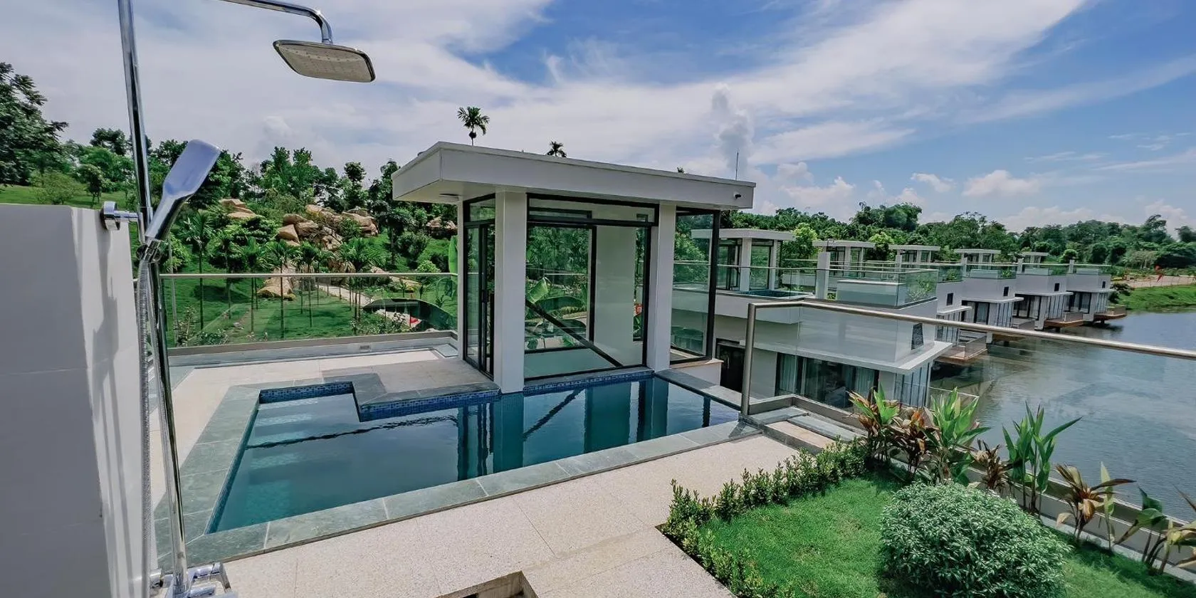 Villa FLC Sầm Sơn Ngọc Trai - Ngay Gần Biển位于岑山,享有市景,提供免费自行车、户外游泳池、花园、私家海滩和共用休息室。住宿提供空调,配有私人泳池、spa浴缸和桑拿浴室。 每间房间都配有露台、带冰箱的设施齐全的厨房、带沙发床休息区、平板电视、洗衣机以及带坐浴盆和免费洗浴用品的私人浴室。部分房间配有阳台和/或海景或池景庭院。...