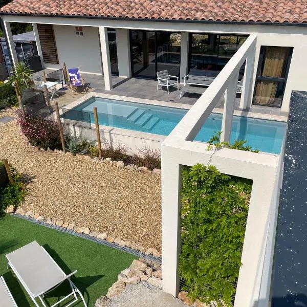 Situated in Leucate, 2.5 km from Galion and 23 km from Reserve Africaine de Sigean, Casa Bianca - Villa d'architecte avec piscine features air-conditioned accommodation with a terrace and free WiFi.