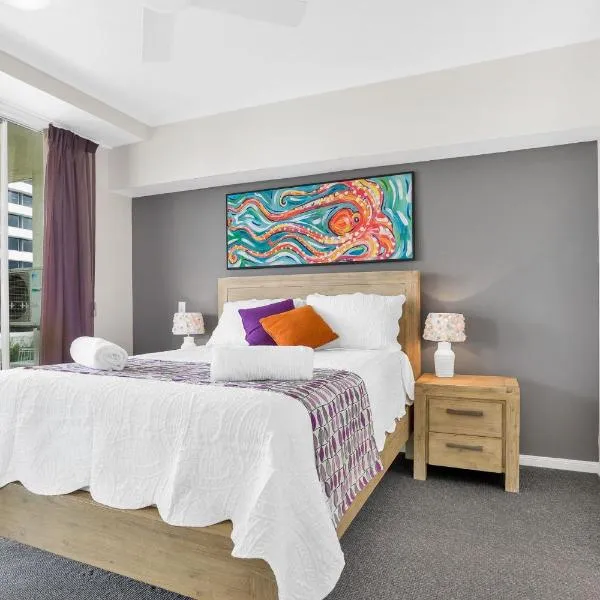 Private Apartments in the Temple Beachfront Resort Palm Cove提供餐厅、户外游泳池、健身中心和露台,距离棕榈湾海滩(Palm Cove Beach)有几步路。住宿提供免费WiFi,内部提供私人停车位。 每间房间都配备阳台、带冰箱的设施齐全的厨房、带沙发床休息区、平板电视以及带淋浴设施和免费洗浴用品的私人浴室。