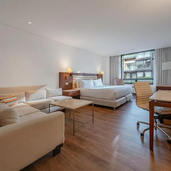 Grand Hyatt Bogota位于波哥大,距离科尔菲利亚斯国际会展中心有2.5公里,提供健身中心、免费私人停车位、花园和共用休息室。这家住宿配有餐厅,还提供露台、桑拿房和热水浴池。住宿配备24小时前台、机场交通服务、客房服务以及免费WiFi。 这家酒店为客人提供空调客房,配有书桌、保险箱、平板电视以及带淋浴设施的私人浴室。所有房间为客人提供冰箱。