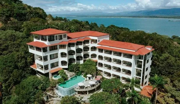 The resort is located on the Punta Quepos promontory in Costa Rica, surrounded by 12 acres of wildlife-rich tropical rainforest with panoramic views of the Pacific Ocean and Manuel Antonio.