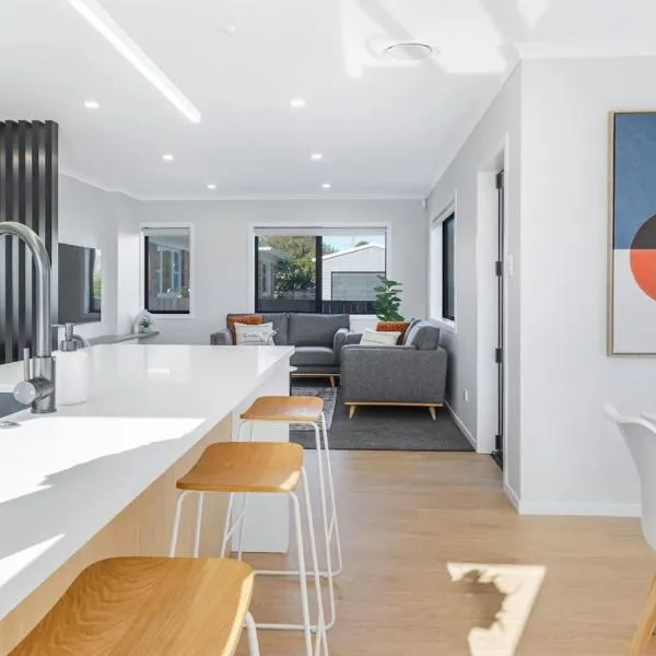 ParkHaven - Views, Luxury and central -By KOSH BNB位于汉密尔顿,地处中心地带,拥有市景阳台。这家住宿距离怀卡托体育场有8分钟步行路程,配备露台和免费私人停车位。 这家空调公寓配有2间卧室、起居室、带冰箱和咖啡机的设施齐全的厨房以及2间带淋浴设施和吹风机的浴室。这家公寓也拥有休息区和2间浴室。...