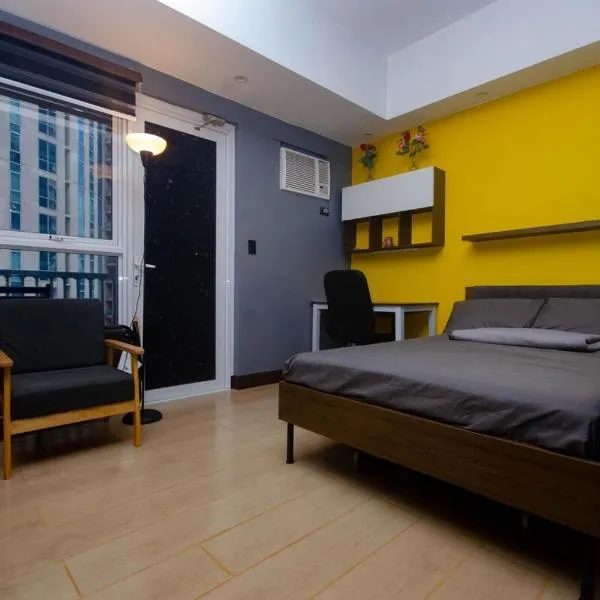 Luxury condo At Shore 1 Tower C1, Mall of Asia Complex Pasay City坐落于马尼拉,距离SM亚洲购物中心有15分钟步行路程,配备共用休息室、免费WiFi、24小时前台和ATM取款机。内部提供私人停车位。 这家空调公寓配有1间卧室、起居室、带冰箱和电热水壶的设施齐全的小厨房以及1间带坐浴盆和淋浴设施的浴室。