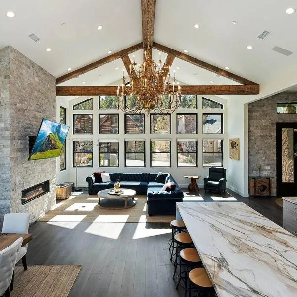 Starlight Summit - Walk to Slopes - Luxury cabin with game room, hot tub, and pool table位于大熊湖,距离大熊码头有4.1公里。客人可以使用热水浴池。入住这家度假屋的客人可以使用免费WiFi和庭院。 这家度假屋配有4间卧室,配有3间带热水浴池和浴缸的浴室。