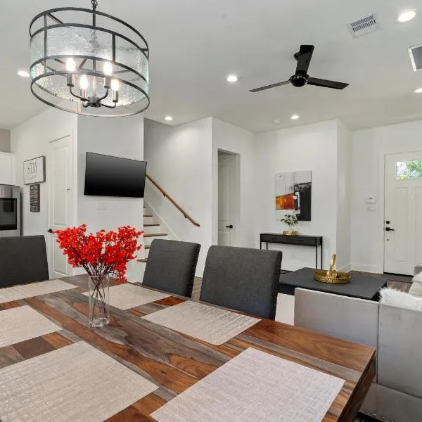 Modern Luxury retreat in downtown位于得克萨斯州的休斯顿,配有阳台。住宿提供内部餐厅、免费私人停车位和免费WiFi。 这家空调度假屋配有3间卧室、起居室、带冰箱和咖啡机的设施齐全的厨房以及3间带淋浴设施和免费洗浴用品的浴室。3间浴室配有浴缸,也为客人提供吹风机,提供毛巾和床上用品。...