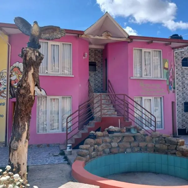 Hostal La Casa del Sol位于科帕卡巴纳,距离Inca Gallows有6分钟步行路程,提供花园、免费私人停车位和露台。这家宾馆提供免费WiFi,距离Nuestra Señora de Copacabana Cathedral约有2分钟步行路程,距离Copacabana Stadium有700米。客人可以欣赏花园景。...
