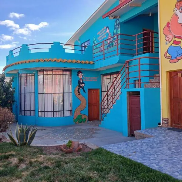 Hostal La Casa del Sol位于科帕卡巴纳,距离Inca Gallows有6分钟步行路程,提供花园、免费私人停车位和露台。这家宾馆提供免费WiFi,距离Nuestra Señora de Copacabana Cathedral约有2分钟步行路程,距离Copacabana Stadium有700米。客人可以欣赏花园景。 每间客房都配备带淋浴设施的私人浴室。