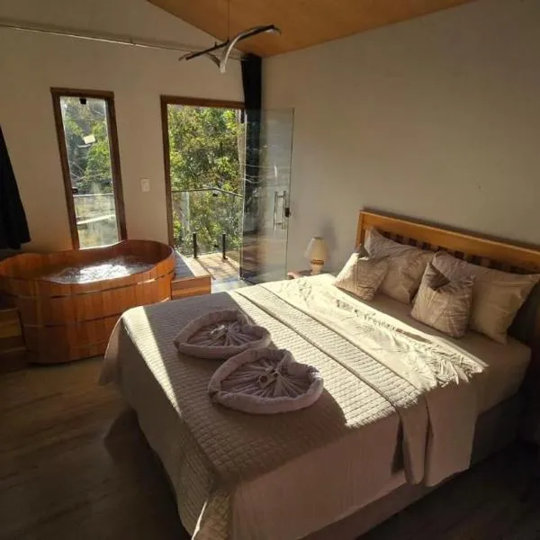 Boasting a spa bath, Recanto Águas Nascentes - Chalé Casal com Hidromassagem is set in Pedra Menina. This property offers access to a balcony and free private parking.