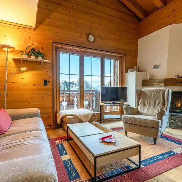 Chalet Alpin, central et parking, a property with a terrace, is located in Veysonnaz, 15 km from Sion, 35 km from Crans-sur-Sierre Golf Club, as well as 14 km from Mont Fort.
