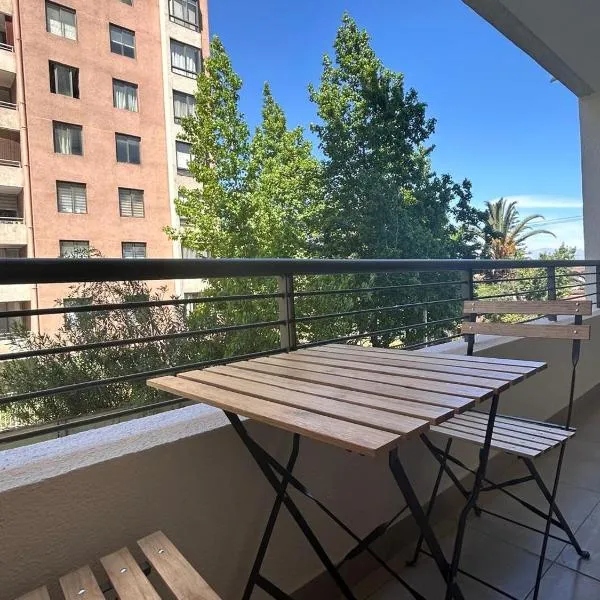 Moderno y Comodo Departamento en Ñuñoa 2D1B Piso 6坐落于圣地亚哥,距离莫维亚体育场有6.2公里。客人可以使用全年开放的室外泳池、免费WiFi和24小时前台。这家自助式公寓配有私人泳池、花园和免费私人停车位。 这家公寓提供露台,享有市景,拥有2间卧室、起居室、平板电视、带冰箱和烤箱的设施齐全的厨房以及1间带浴缸的浴室。