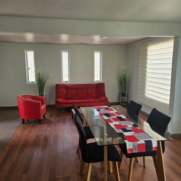 Pichidangui, Las Rosas casa 4 personas位于皮什丹吉。这家住宿距离皮奇丹吉海滩(Pichidangui Beach)有2.4公里,提供露台和免费私人停车位。 这家度假屋配有2间独立卧室、设施齐全的厨房以及1间浴室。这家度假屋也为客人提供1间浴室。