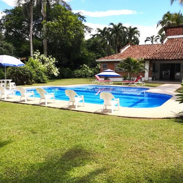 Cabaña en Santa Fe de Antioquia坐落于圣菲德安蒂奥基亚,提供户外游泳池,距离卡纳洛亚水上乐园有5公里。这家自助式度假屋拥有私人泳池、花园和免费私人停车位。 这家空调度假屋提供1间卧室,配有3间带浴缸或淋浴设施和热水浴池的浴室。这家度假屋配备花园景,也配备平板电视、厨房和3间浴室。 这家度假屋的客人可以使用热水浴池。 奥拉亚·埃雷拉机场距离住宿有60公里。