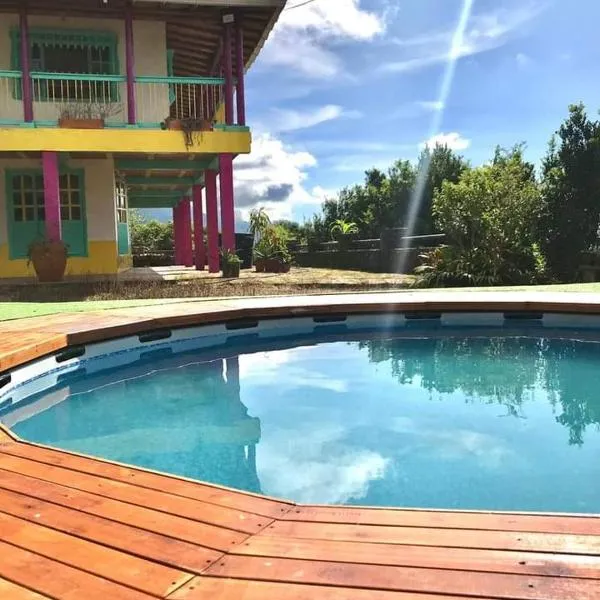 CASA QUINTA CON PISCINA PRIVADA en Melgar Tolima享有池景,配备户外游泳池和庭院,距离Piscilago乐园约有9.4公里。这家自助式别墅配有私人泳池、花园、烧烤设施、免费WiFi和免费私人停车位。 这家别墅配有5间卧室、4间浴室、床上用品、毛巾、带有线频道的平板电视、用餐区、设施齐全的厨房以及山景露台。这家别墅还提供4间带淋浴设施的浴室。...