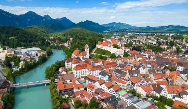 This traditional, family-owned hotel is situated in the heart of the beautiful Old Town of Füssen, in the Eastern Allgäu region, close to the Austrian border.