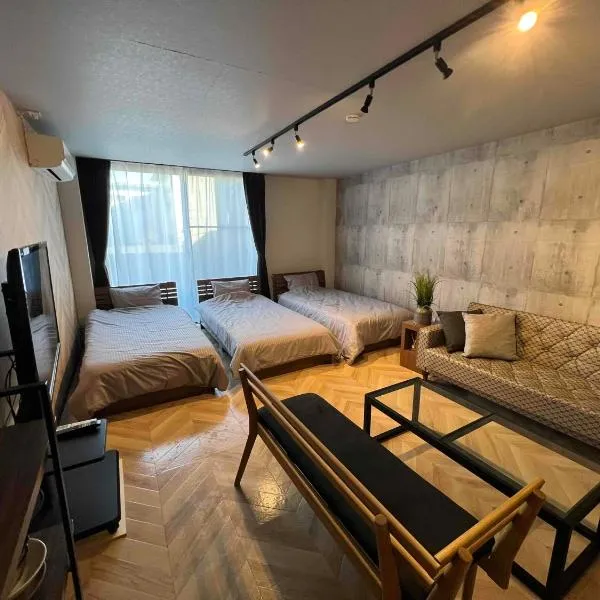 Cozy Fukui位于福井,提供厨房,距离Fukui International Activities Plaza有17分钟步行路程,距离Fukui Prefecture Industrial Hall有5.4公里。这家住宿距离Phoenix Plaza有6分钟步行路程,为客人提供免费WiFi,内部提供私人停车位。 这家空调公寓配有2间卧室以及1间带坐浴盆、淋浴设施和吹风机的浴室。