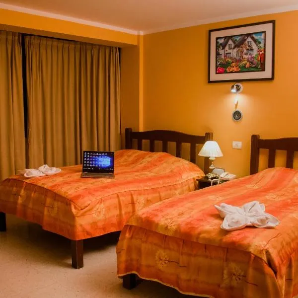 HOTEL LOS ANDES SUITE位于特鲁希略,配备客房,靠近De La Merced Church和Trujillo Municipality。这家舒适型酒店提供客房服务、24小时前台和免费WiFi。住宿为客人提供礼宾服务、旅游咨询台和外币兑换服务。 这家酒店的每间客房都配有书桌、平板电视、私人浴室、床上用品和毛巾。HOTEL LOS ANDES SUITE的部分客房享有市景。