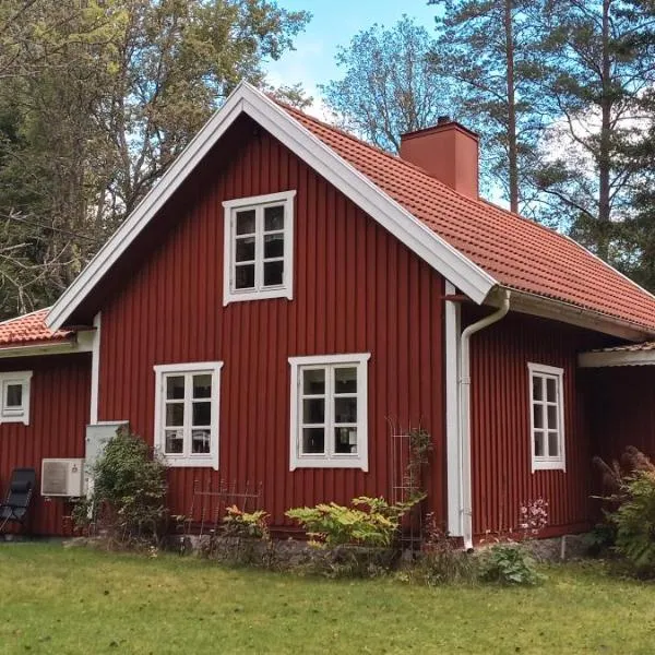 Charming Cottage by Lake in Torsebo位于Virserum,提供带免费WiFi的花园景客房,配有花园。入住这家度假屋的客人可以使用阳台。 这家度假屋配有1间独立卧室、起居室、带冰箱和微波炉的设施齐全的厨房以及1间浴室。这家度假屋还配备1间带淋浴设施的浴室。 韦克舍机场距离住宿有97公里。