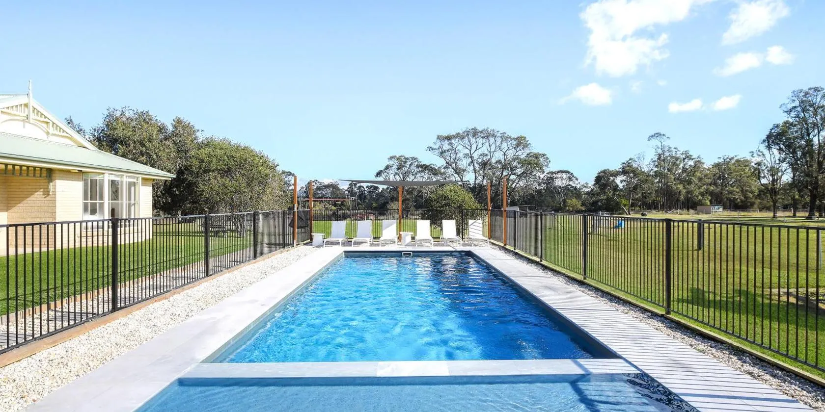 Blaxlands Kangaroo Homestead with Hot Tub walk to Concerts and Wineries位于波高尔宾,享有池景,配有客房、私人泳池和阳台。这家度假屋配备免费私人停车位。客人可以在周边地区体验徒步和骑马等活动。 这家空调度假屋配有5间卧室、起居室、带冰箱和咖啡机的设施齐全的厨房以及3间带热水浴池和吹风机的浴室。