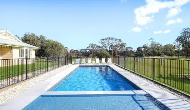 Luxury 7 bedroom Estate Hunter Manor Located in Central Hunter Valley坐落于努尔卡巴,配备空调客房和私人泳池。这家度假屋配有免费私人停车位。客人可以在周边地区体验徒步和骑马等活动。 这家度假屋拥有7间卧室、带有线频道的平板电视、带冰箱和洗碗机的设施齐全的厨房、洗衣机以及4间带浴缸的浴室。4间浴室提供吹风机。