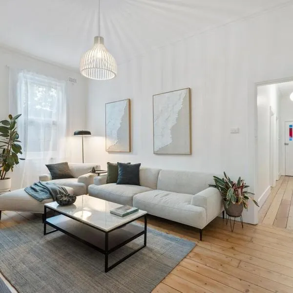 Stunning Townhouse - 10 min to CBD坐落于墨尔本,距离公主剧院有7.4公里,距离罗德拉沃竞技场有7.4公里,距离墨尔本皇家植物园有7.8公里。这家住宿距离墨尔本板球场有6.1公里,为客人提供免费WiFi,内部提供私人停车位。 这家空调度假屋配有2间独立卧室、带冰箱和烤箱的设施齐全的厨房以及2间浴室。这家度假屋还配备平板电视以及2间带吹风机的浴室。