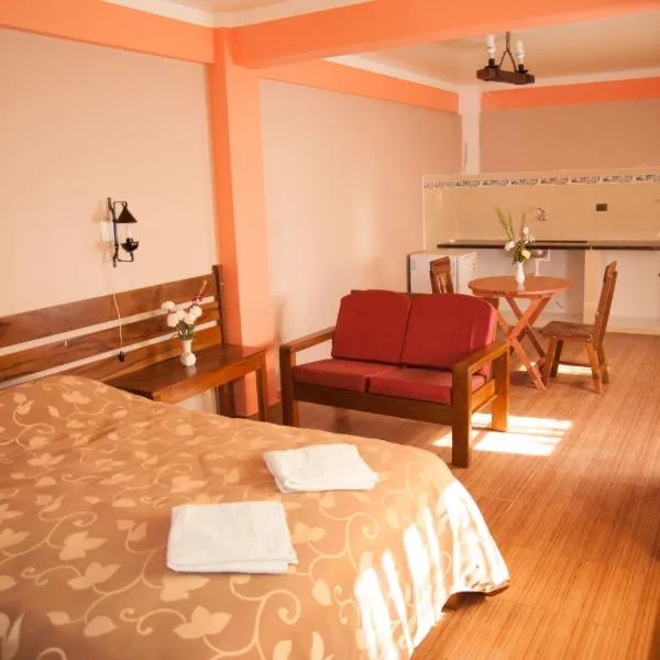 Hotel Qhawarina de Casas Kolping Bolivia S.R.L.位于苏克雷,距离Bolivar Park有1.9公里,提供花园、免费私人停车位、露台和餐厅。这家舒适型酒店提供客房服务、24小时前台和免费WiFi。住宿为客人配备礼宾服务、旅游咨询台和外币兑换服务。 部分客房配有带烤箱、迷你吧和炉灶的厨房。 这家酒店的客人可以享用美式早餐。