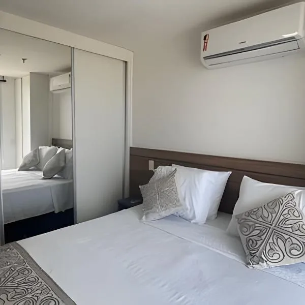 Flat melhor localização Hotel Athos Bulcão坐落于巴西利亚,配有全年开放的室外泳池和桑拿浴室,距离全国购物中心有不到一公里,距离巴西利亚体育场有1.8公里。住宿配备免费WiFi。 房间配有空调、设施齐全的小厨房、平板电视以及带淋浴设施、免费洗浴用品和吹风机的私人浴室。所有房间均提供市景阳台。