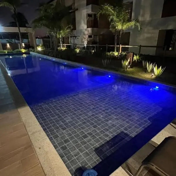 Village 02 suítes, piscina e churrasqueira em Guarajuba位于瓜拉久巴,距离德古拉久巴海滩(Praia de Guarajuba)有不到2.6公里,距离加西亚-达维拉城堡有12公里,提供免费WiFi、空调、户外游泳池和花园。内部提供私人停车位。