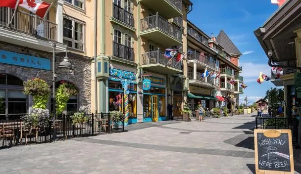 Executive Town Home-Mountain View-Historic Snowbridge Village, Walking Distance to the Resort坐落于科灵伍德,靠近跳水运动中心,配备自助式住宿、季节性室外泳池、滑雪设备租赁、私人海滩、花园和露台。这家度假屋配有阳台。客人可以在周边地区体验滑雪和骑行等活动。
