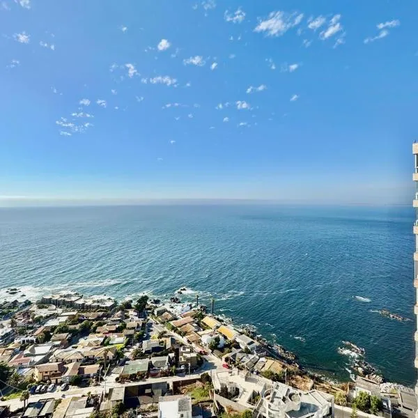 Situated in Concón and only 700 metres from Los Lilenes Beach, Gran Vista al Mar Moderno Depto Costa Montemar features accommodation with mountain views, free WiFi and free private parking.