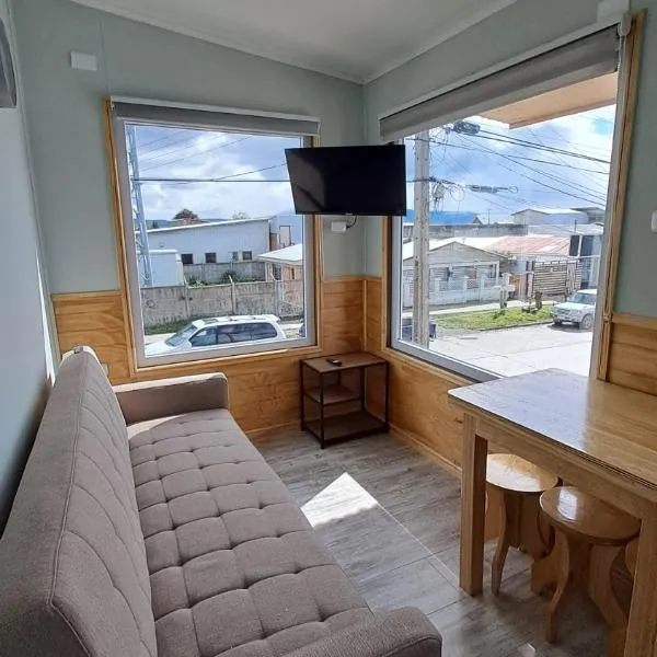 Container Departamento en Puerto Natales提供花园以及带庭院和免费WiFi的住宿,距离纳塔莱斯港汽车站有2分钟步行路程。 所有房间均配有市景露台、带冰箱和烤箱的小厨房以及带淋浴设施的私人浴室。住宿还配备微波炉和电热水壶。 这家公寓附近的热门地标包括市立历史博物馆、纳塔莱斯港主广场和玛利亚基督徒教堂。加利亚多胡里奥空军机场距离住宿有8公里。
