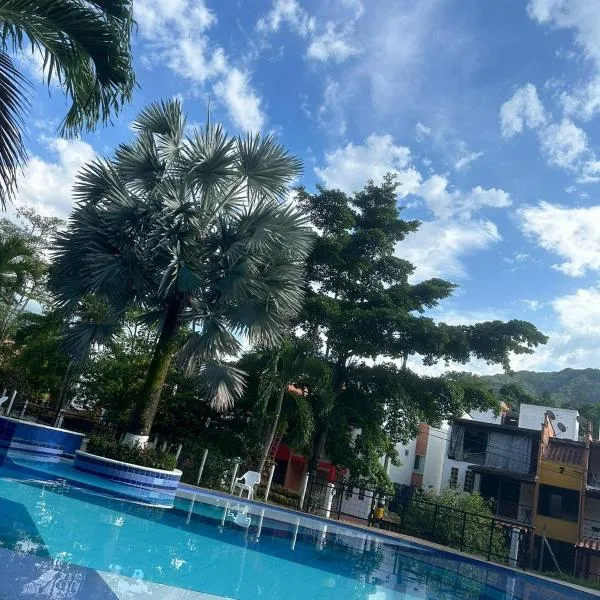Apartamento San Jerónimo - Antioquia位于圣赫罗尼莫,距离埃尔波夫拉多公园仅有43公里,提供户外游泳池、花园、露台和免费WiFi。这家公寓配备免费私人停车位和24小时前台。 这家空调公寓配有3间卧室、起居室、带冰箱和电热水壶的设施齐全的厨房以及2间带热水浴池和免费洗浴用品的浴室。这家公寓也提供休息区和2间浴室。 这家公寓的客人可以使用热水浴池。...