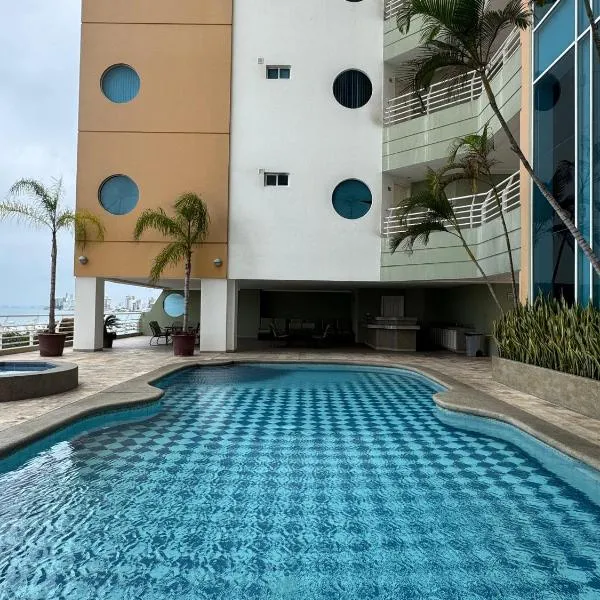 Departamento frente al mar坐落于圣埃莱纳,内部配备季节性室外泳池和酒吧,距离圣洛伦佐海滩(San Lorenzo Beach)仅几步路。这家公寓配备免费私人停车位、24小时前台和免费WiFi。 这家空调公寓配有3间独立卧室、起居室、设施齐全的厨房以及3间浴室。这家公寓也配备3间浴室。 瓜亚基尔机场距离住宿有145公里。