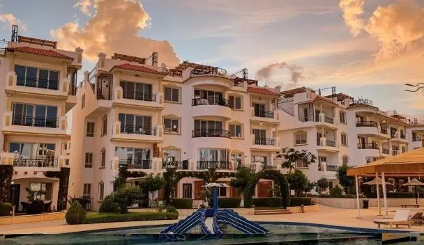 In the Nabq Bay district of Sharm El Sheikh, close to Royal Albatros Moderna Beach, Luxury Poolside Retreat Elegant Apartment two rooms within a Seafront Hotel features a private beach area and a...