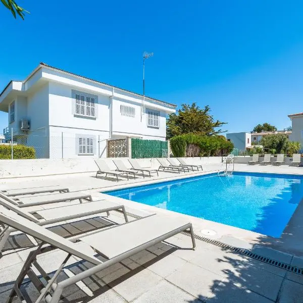 Villa Menorca cerca del mar Alcudia位于阿尔库迪亚,提供免费WiFi、空调、户外游泳池和花园,距离班納薩科拉爾海灘(Platja del Corral d'en Bennàssar)有5分钟步行路程,距离阿尔库迪亚老城有1.9公里。这家住宿提供免费私人停车位,距离马略卡圣阿尔布费拉天然公园有10公里,距离佛门托角有27公里。