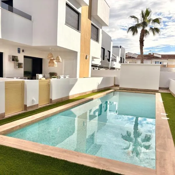 Set in San Pedro del Pinatar, 300 metres from La Mota Beach and 24 km from Las Colinas Golf Course, The beach is close but quiet and not noisy Casa reformada cerca de la playa offers air-conditioned...