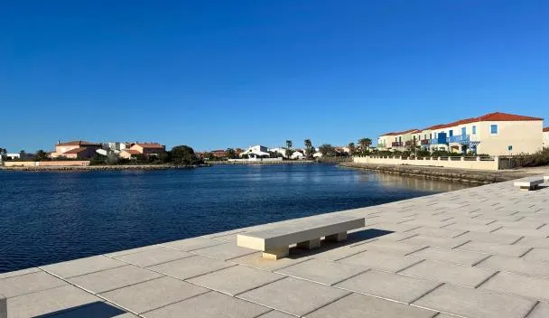 Front de mer - Le Barcarès享有海景,配备露台和阳台,距离吉尔伯特布鲁特斯体育场约有21公里。这家住宿距离圣安日港口海滩(Plage du Port Saint Ange)有几步路,提供私家海滩和免费私人停车位。 这家空调公寓配有1间卧室、起居室、带冰箱和咖啡机的设施齐全的厨房以及1间带淋浴设施和吹风机的浴室。这家公寓也提供休息区和1间浴室。