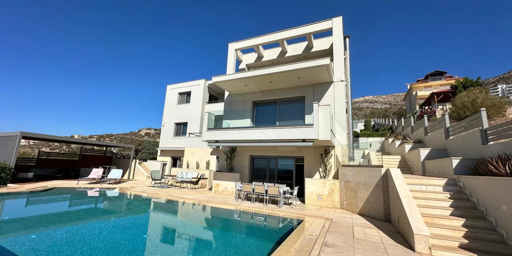 这栋现代化建筑和装饰的4层别墅位于Saronida,设有室外游泳池,享有萨罗尼克湾(Saronic Gulf)和周边地区的全景,提供免费WiFi和免费内部私人停车场。 别墅拥有地板到天花板的窗户和现代家具,提供4个独立卧室,其中2间设有连接浴室。别墅还提供设备齐全的厨房、小厨房、带壁炉的宽敞客厅,以及拥有高天花的用餐区域。设施包括洗碗机、烤箱、平板电视和DVD播放机提供。