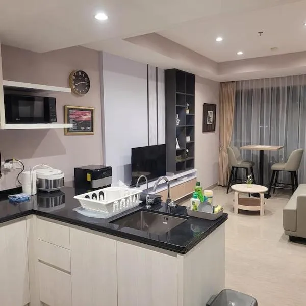 Fairview House apartment karawaci位于卡拉瓦奇,距离印尼会展中心仅有14公里,提供露台、室外泳池、免费WiFi和24小时前台。这家住宿享有市景,配备阳台。 这家空调公寓配有2间卧室、起居室、带冰箱和电热水壶的设施齐全的厨房以及2间带淋浴设施和免费洗浴用品的浴室。2间浴室配有浴缸,也提供吹风机,提供毛巾和床上用品。 这家公寓提供儿童游乐区。
