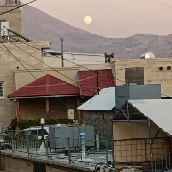 in the heart of Majdal-shams位于迈季代勒舍姆斯,距离巴尼亚斯瀑布有16公里,距离Nimrod Fortress有8.6公里,提供免费WiFi和空调。这家住宿享有山景,距离黑门清泉巴尼亚斯自然保护区有14公里。 这家公寓提供阳台,享有市景,配有1间卧室、起居室、平板电视、带冰箱和微波炉的设施齐全的厨房以及1间带淋浴设施的浴室。这家公寓也拥有1间浴室。