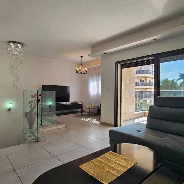 Luxury Duplex • 3BR • Garden + Balcony • Parking坐落于North District Israel的纳哈里亚,拥有露台,享有市景。这家住宿距离索科洛夫海滩(Sokolov Beach)有不到一公里,配备花园和免费私人停车位。 这家空调公寓配有3间卧室、起居室、带冰箱和咖啡机的设施齐全的厨房以及3间带淋浴设施和免费洗浴用品的浴室。