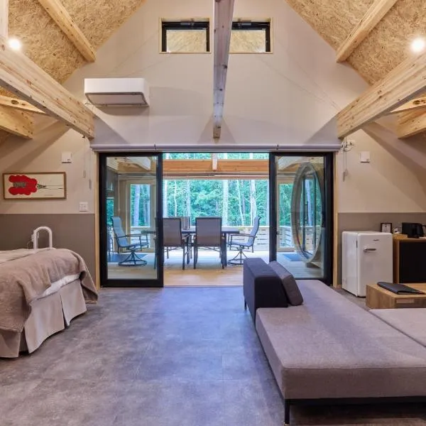 1日1組限定森の中の貸切コテージundo坐落于鸣泽市,距离河口湖有不到9公里,距离富士急高原乐园有10公里,提供免费WiFi、空调、花园和滑雪至门口雪道。这家度假屋配有免费私人停车位。客人可以在周边地区体验徒步、滑雪和垂钓等活动。 这家度假屋提供3间卧室、带冰箱和炉灶的小厨房以及1间带淋浴设施和免费洗浴用品的浴室。1间浴室提供吹风机。 如果客人想探索该地区,可以在周边地区体验骑行。...