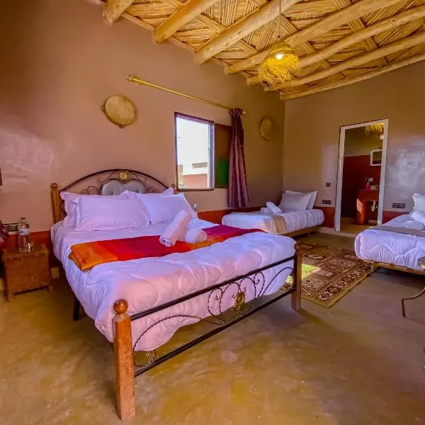 Kasbah Tigmi El Janoub坐落于阿伊特本哈杜,距离阿伊特·本·哈杜筑垒村有7.9公里,配备花园、免费私人停车位、共用休息室和露台。住宿提供24小时前台、机场交通服务、客房服务以及免费WiFi。 这家旅馆的所有房间均配备咖啡机。所有客房都提供带坐浴盆、免费洗浴用品和吹风机的私人浴室。Kasbah Tigmi El Janoub的房间均配有空调和衣柜。